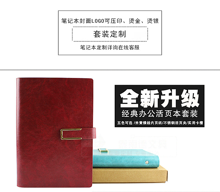 商品名称:商务笔记本套装 a5笔记本活页记事本高档PU皮料记事本 企业办公小礼品定制