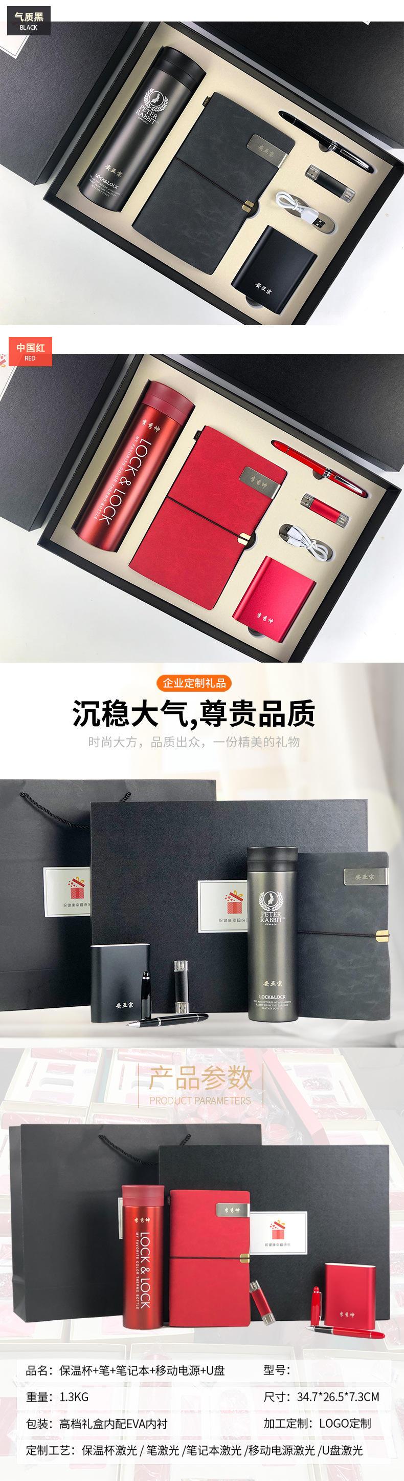 商品名称:商务实用伴手礼套装 乐扣乐扣保温杯+高档笔记本+签字笔+电源+8G U盘 200元左右的礼品
