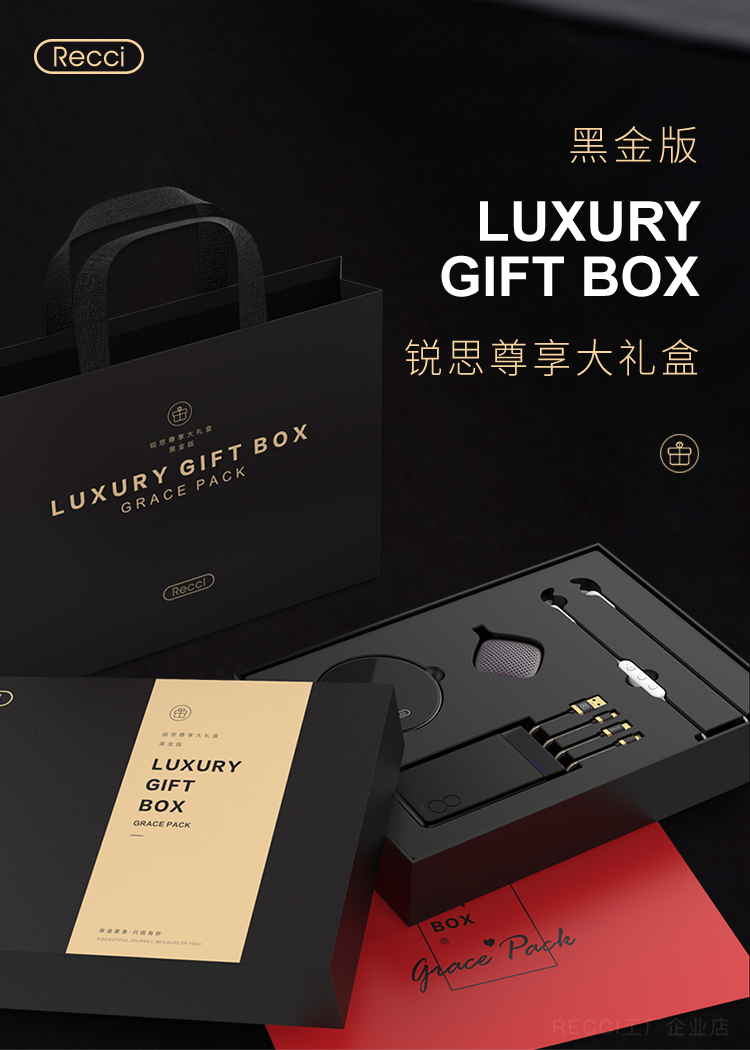 商品名称:Recci 尊享大礼盒 移动电源+无线充电板+蓝牙音箱+数据线+蓝牙耳机 年会抽奖奖品推荐