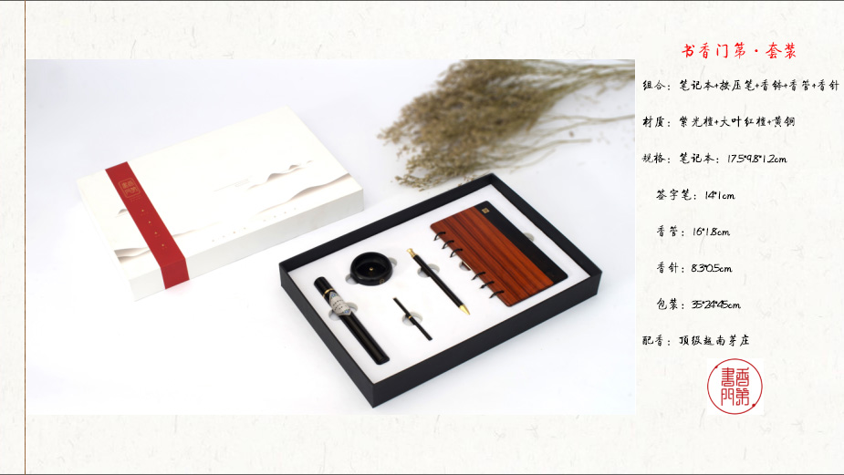 商品名称:【书香门第】笔记本+按压笔+香钵套装 商务礼盒