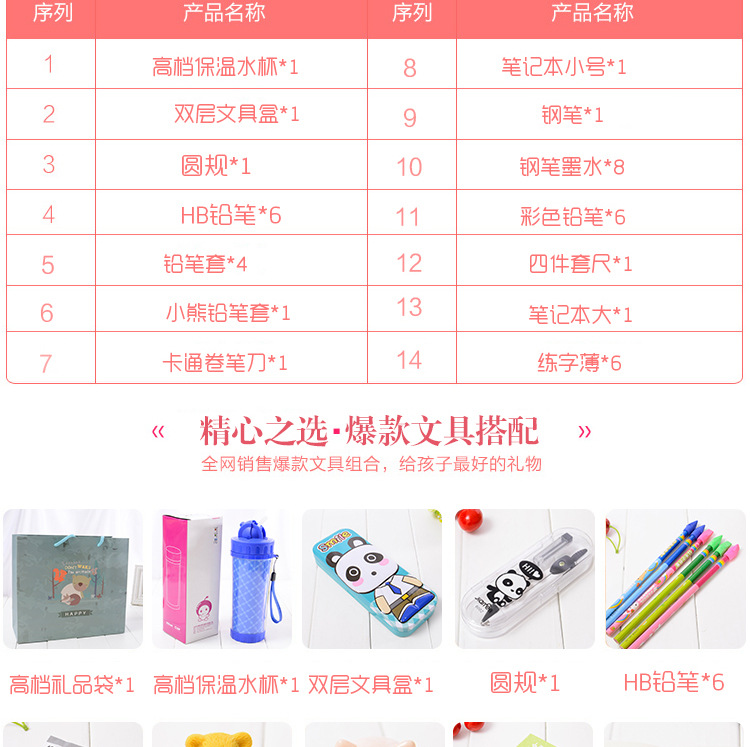 商品名称:男生版 蓝色学生文具礼盒14件套装 开学送学生礼品培 训学校礼品定制
