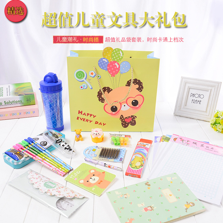 男生版 蓝色学生文具礼盒14件套装 开学送学生礼品培 训学校礼品定制