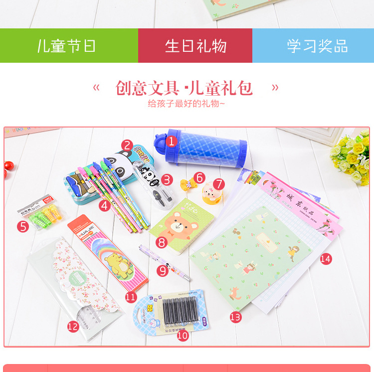 商品名称:女生版 粉色学生文具礼盒14件套装 开学送学生礼品培 训学校礼品定制