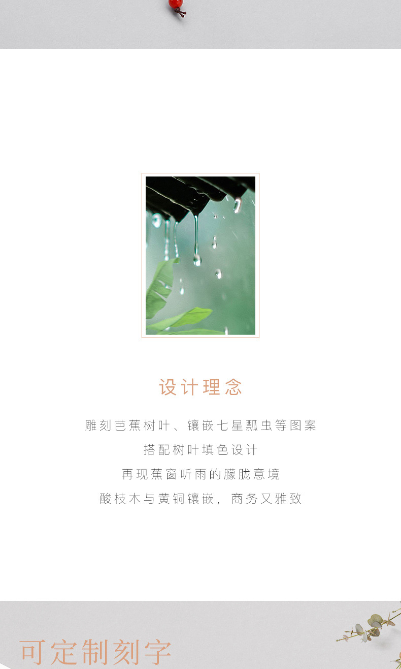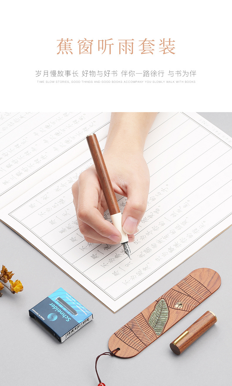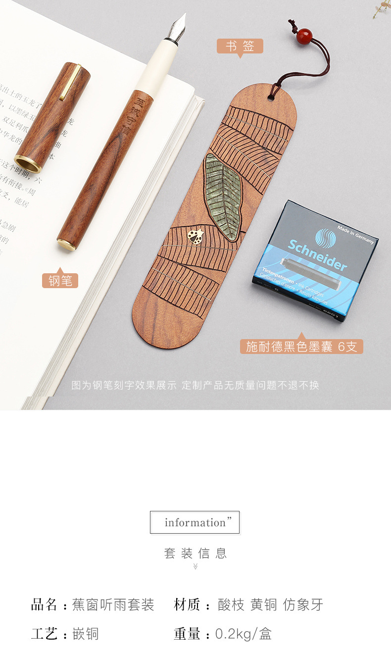 商品名称:蕉窗听雨礼盒套装 酸枝木钢笔+书签 会议特色礼品
