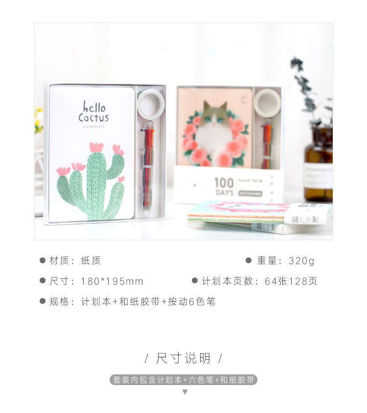 商品名称:100天计划本套装( 计划本+和纸胶带+按动六色笔) 创意计划本记事本笔记本 学生小礼品