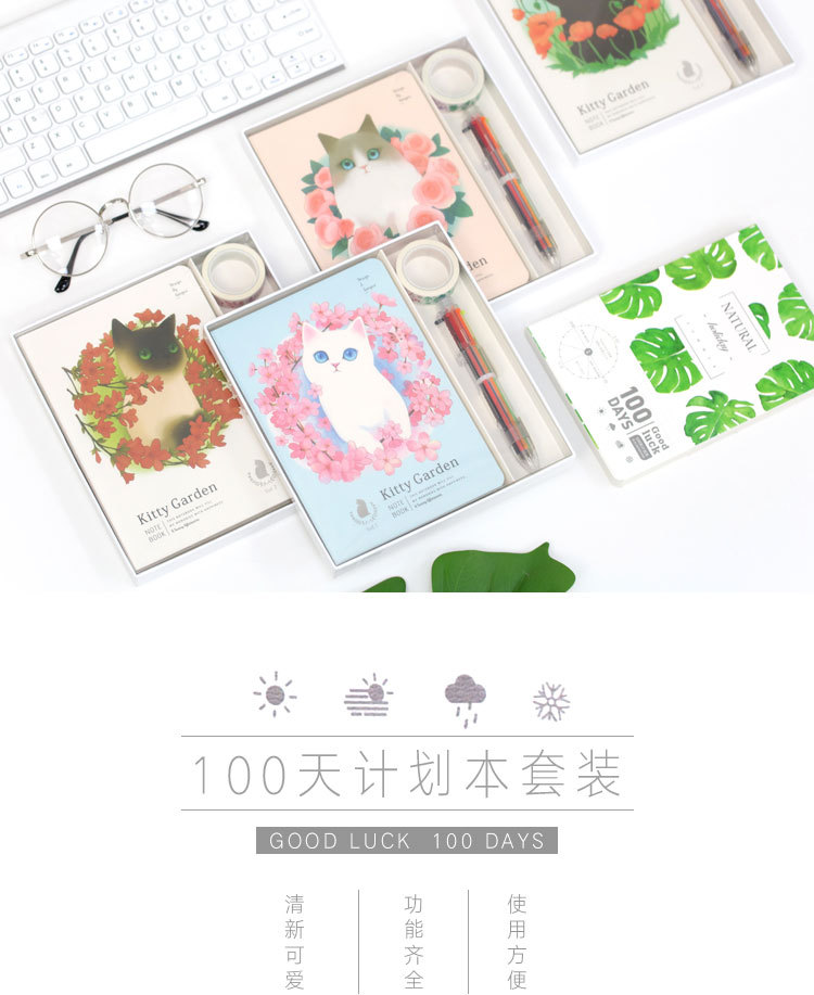 100天计划本套装( 计划本+和纸胶带+按动六色笔) 创意计划本记事本笔记本 学生小礼品