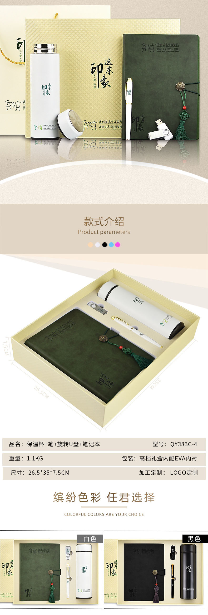 商品名称:高端商务伴手礼四件套 保温杯签字笔U盘笔记本 置业顾问最喜欢的礼品