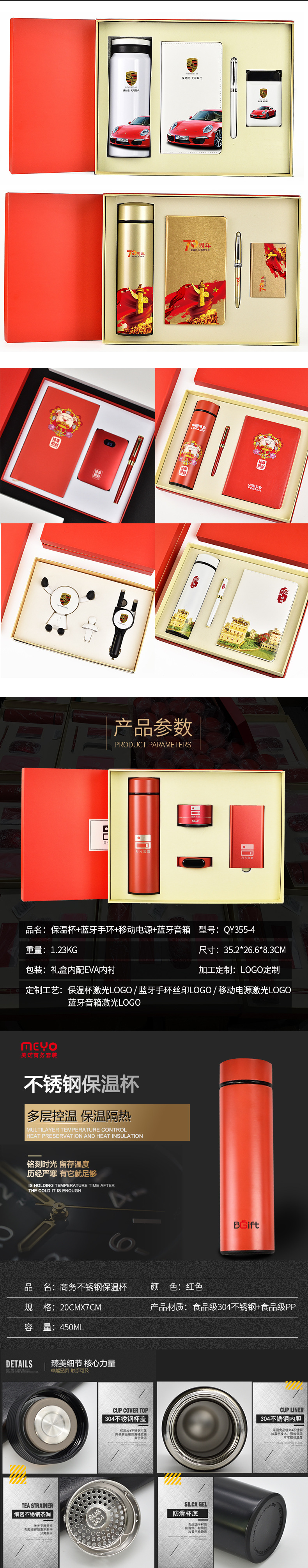 商品名称:商务经典四件套 保温杯手环音响充电宝套装 年会 开业 活动礼品