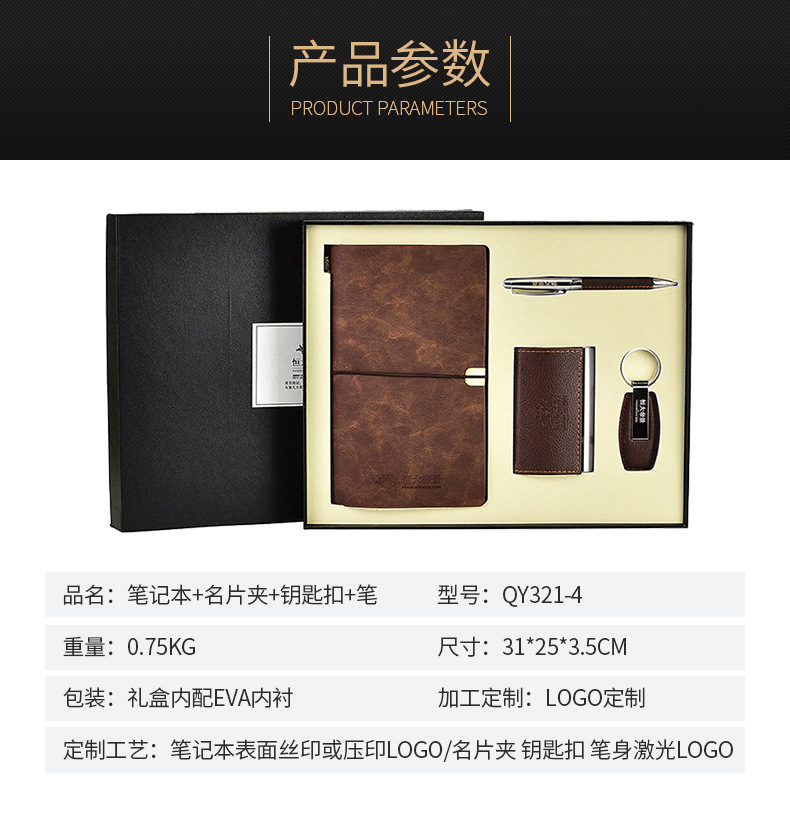 商品名称:雕刻时光四件套商务礼盒 笔记本名片夹钥匙扣笔套装 年会 开业 活动礼品