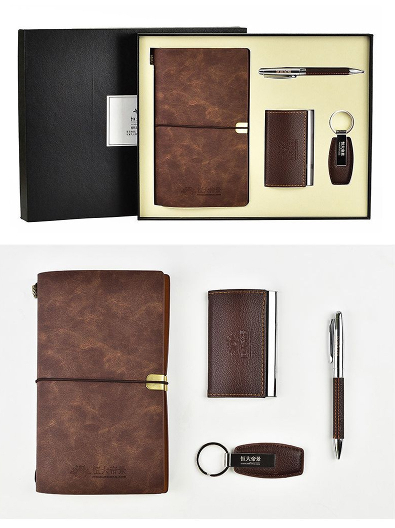 雕刻时光四件套商务礼盒 笔记本名片夹钥匙扣笔套装 年会 开业 活动礼品