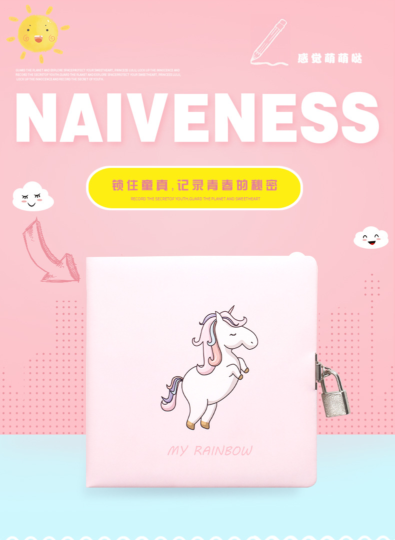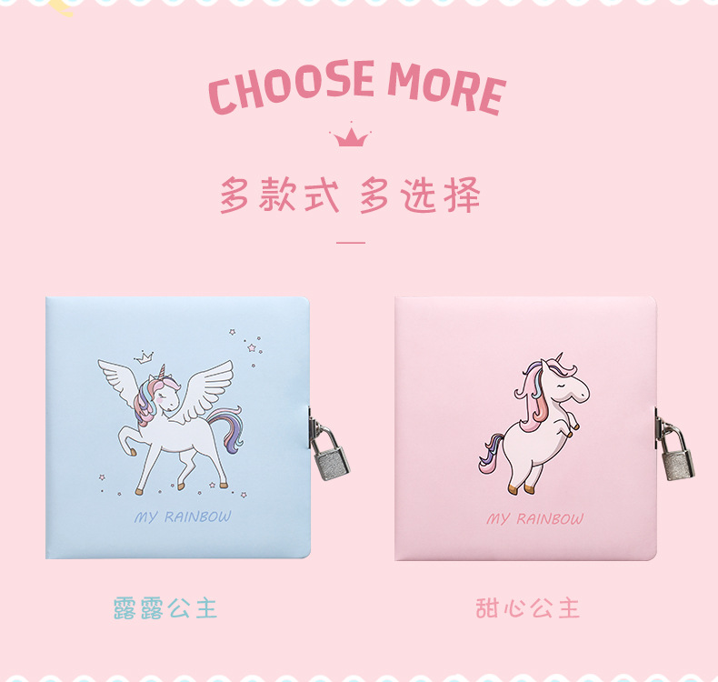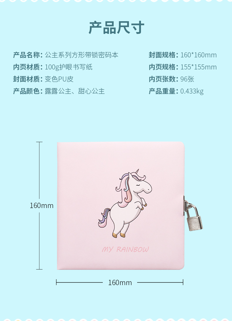 商品名称:【公主系列】方形带锁密码本 独角兽皮质本子 创意商务伴手礼