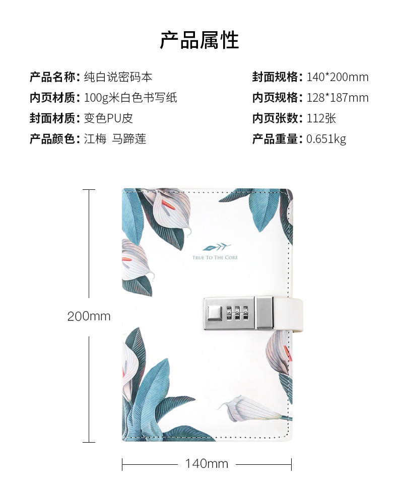 商品名称:清新繁花系列·纯白说密码本 小清新皮面手账本 创意商务办公礼品