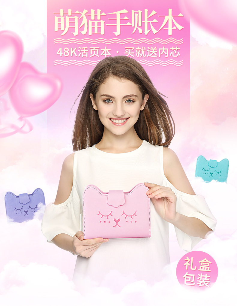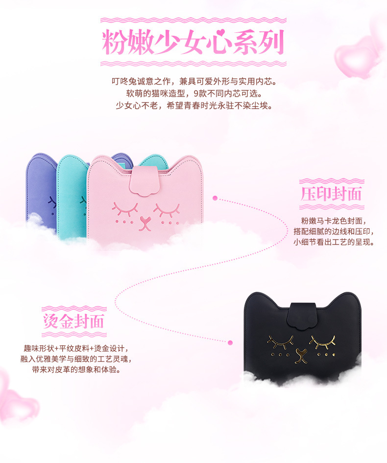 萌喵活页皮套本 带卡位护照位多功能活页手账本 48K记事本笔记本
