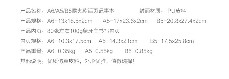 商品名称:商务PU皮A5 A6活页大气简约笔记本 会议记事本 公司年会纪念品推荐