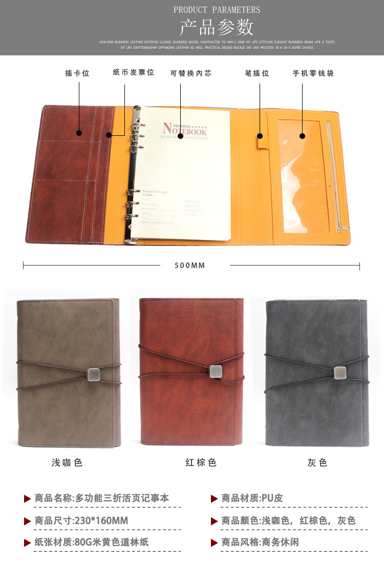 商品名称:三折活页A5绑绳高档PU皮笔记本礼品 记事本本册礼品定制