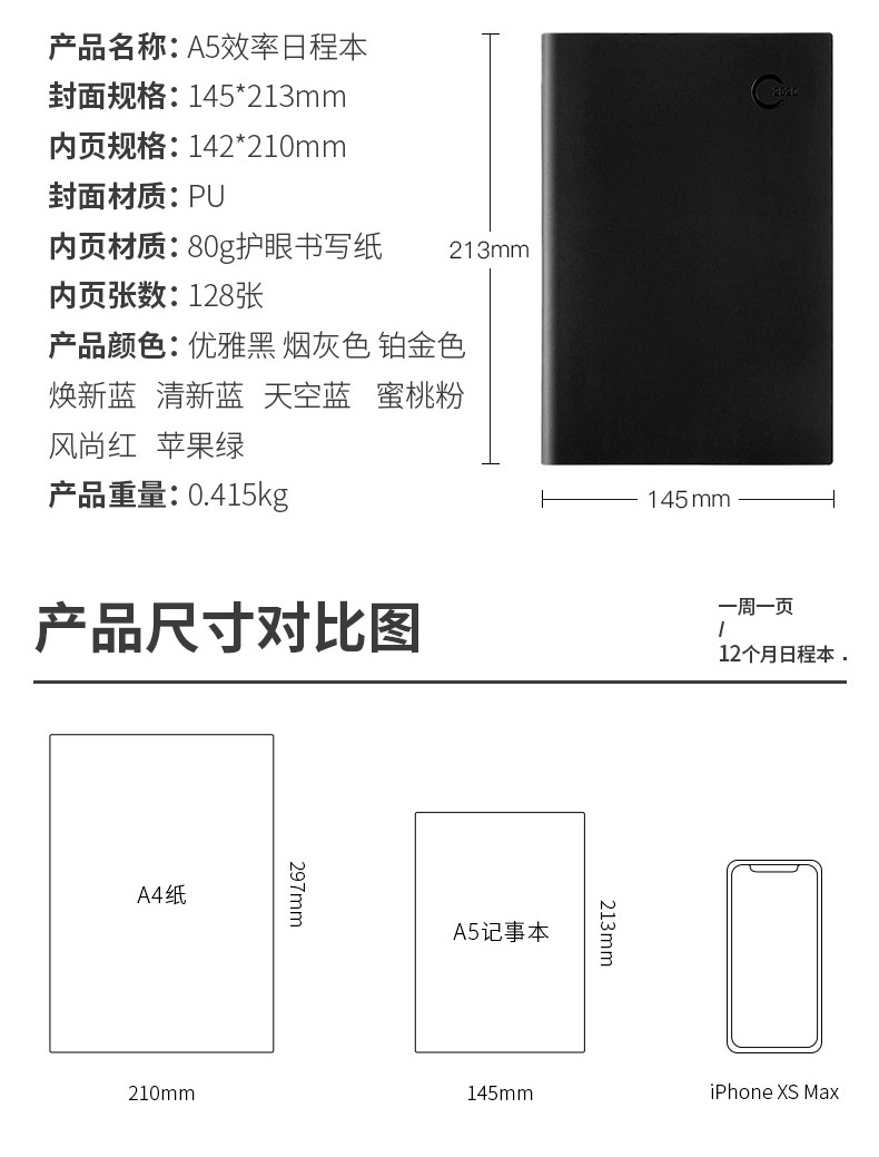 商品名称:2019-2020年跨年效率本册 多彩日程本笔记本 A5计划本记事本
