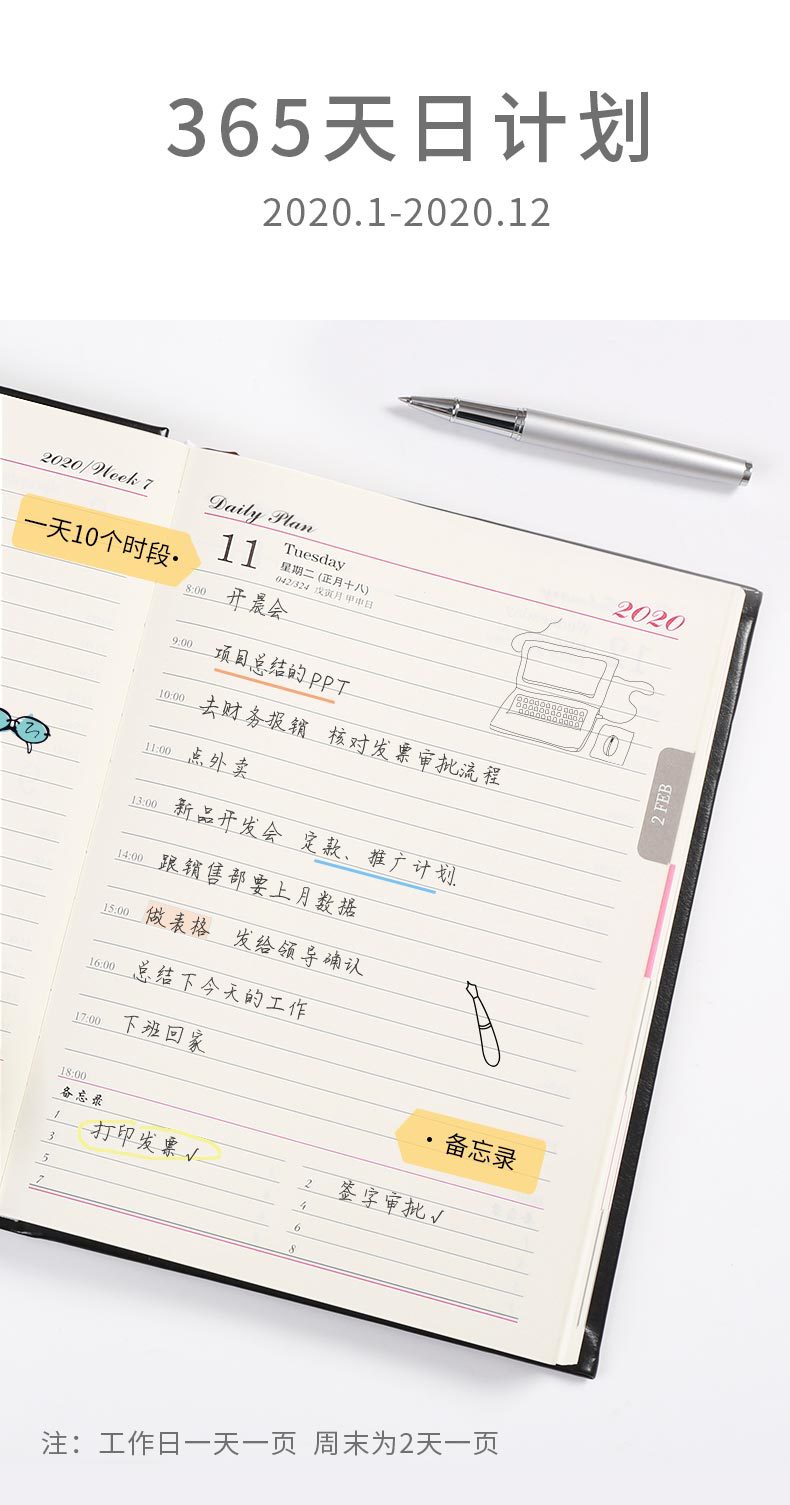 商品名称:2020年彩色烫金日程本时间管理效率手册 12个月日计划本皮面商务 商务定制送什么