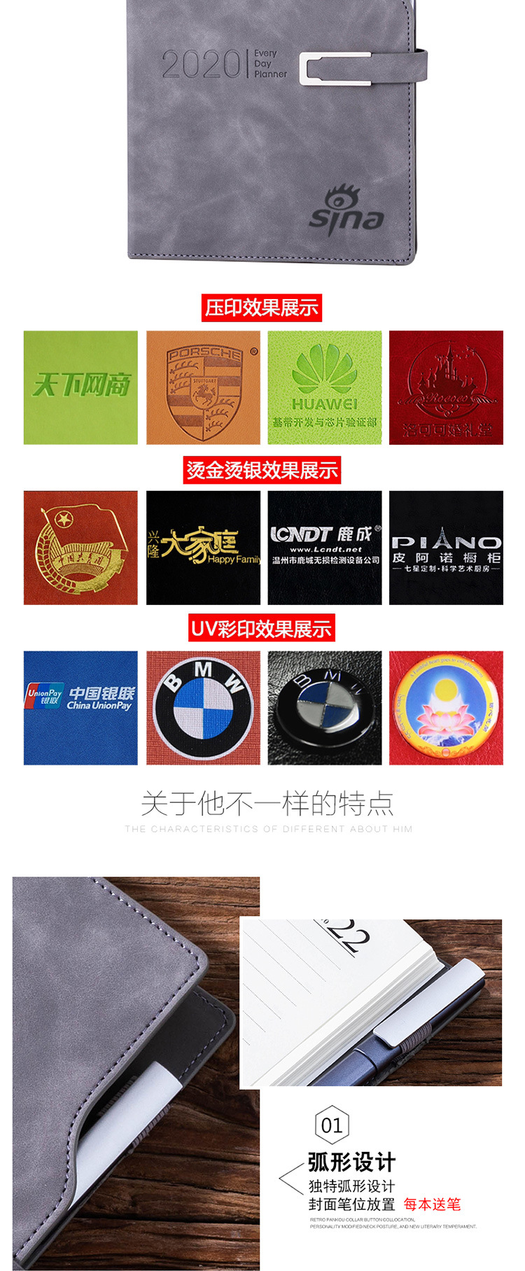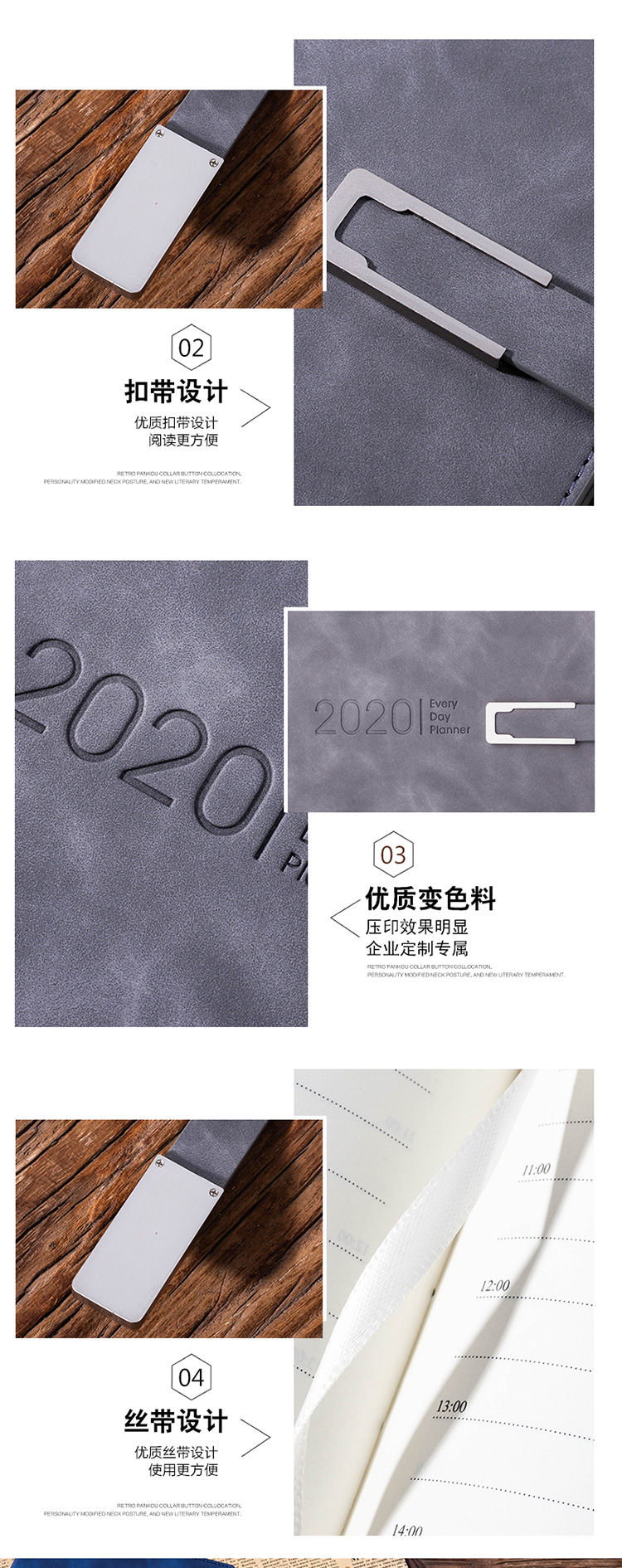 商品名称:【2020】年历本日程本带笔记事本 皮扣设计带笔效率手册手账月计划本 企业定制LOGO