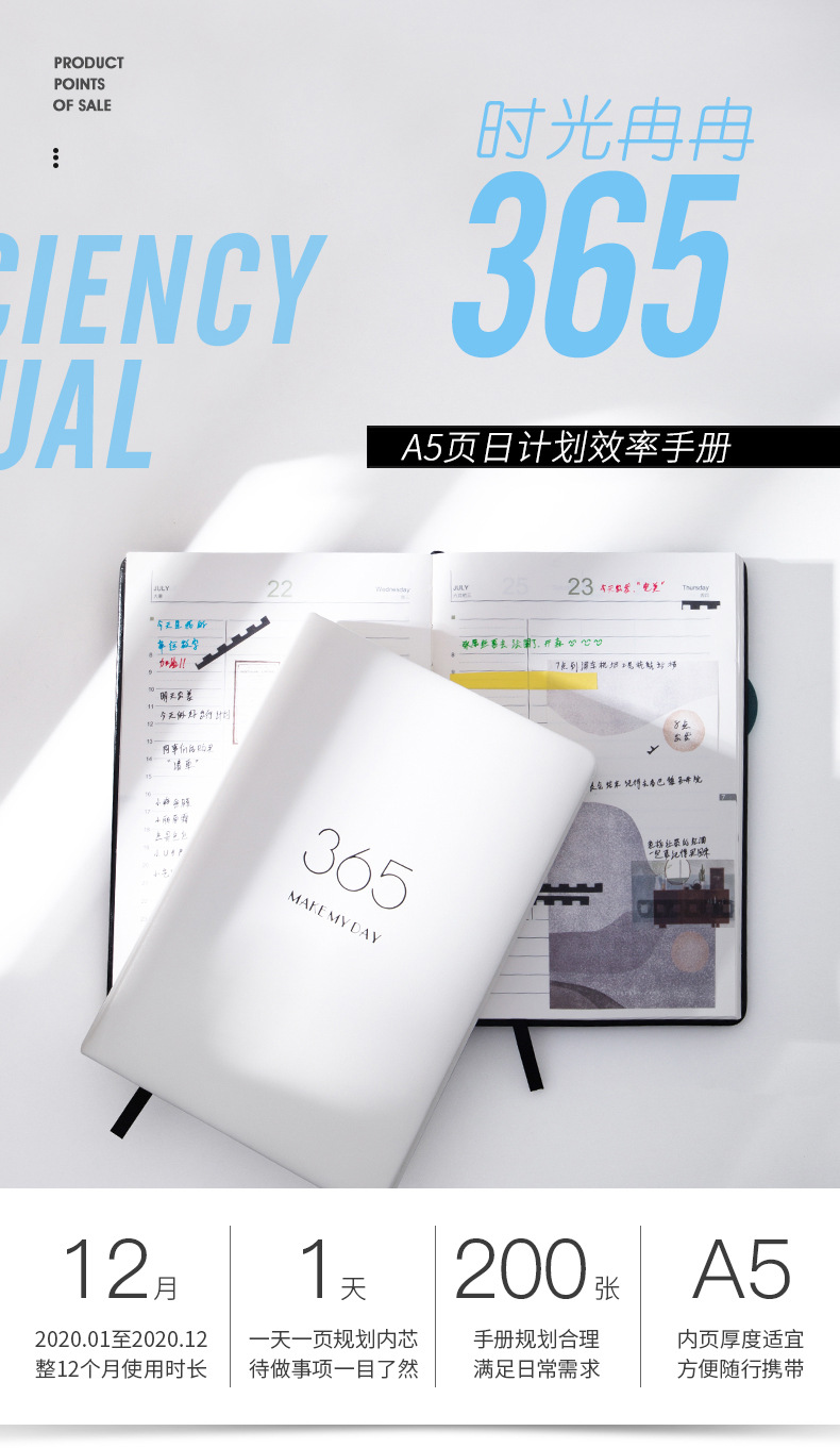 2020手账PU仿皮加厚笔记本 烫金艺术 六色可选365天计划本日历本效率 a5