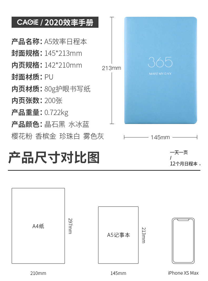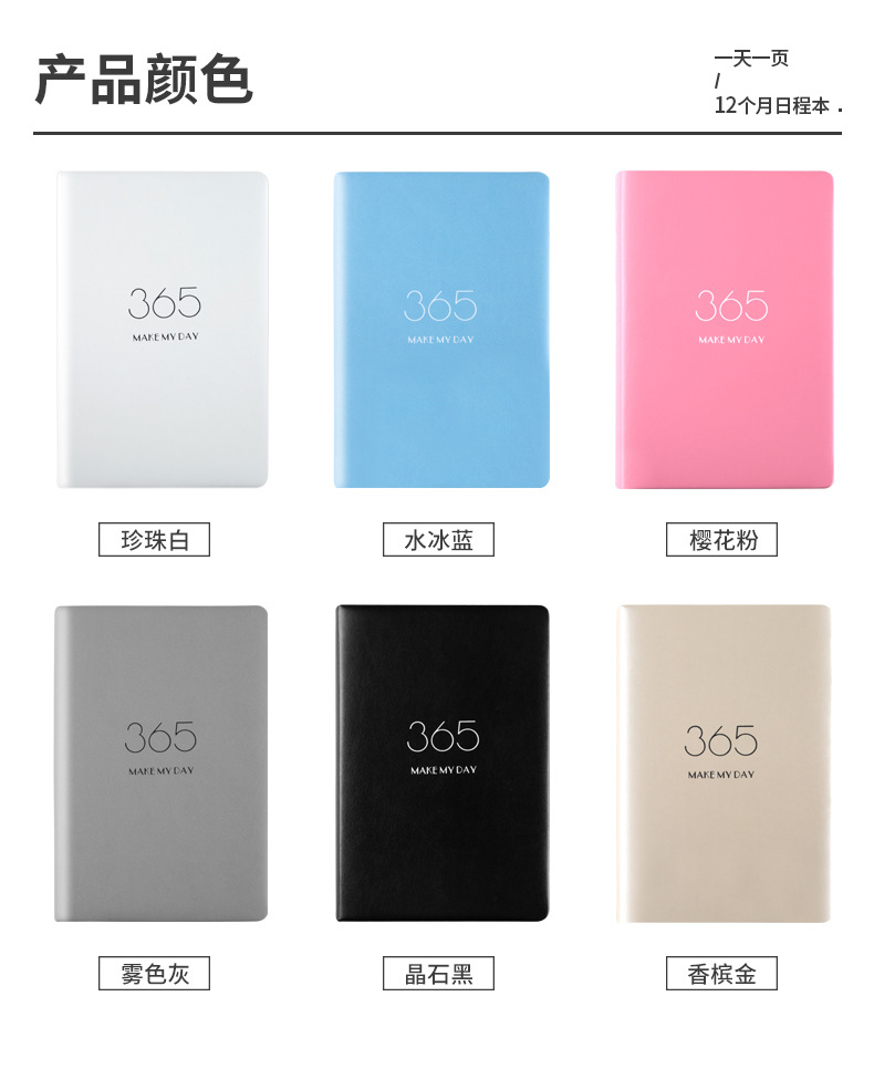 商品名称:2020手账PU仿皮加厚笔记本 烫金艺术 六色可选365天计划本日历本效率 a5
