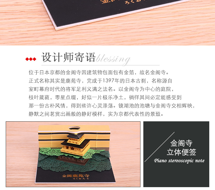 商品名称:【金阁寺】3D立体便签本 立体景观可撕便签 创意年会礼品