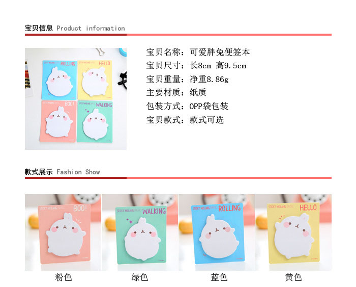 商品名称:可爱创意小兔子便利贴纸便签条N次贴可撕记事留言条 商务礼品