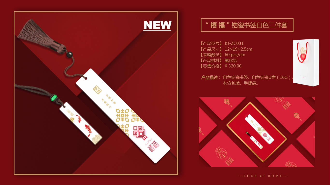 商品名称:【禧 福】白色锆瓷书签U盘 陶瓷文创书签套装 创意商务办公礼品