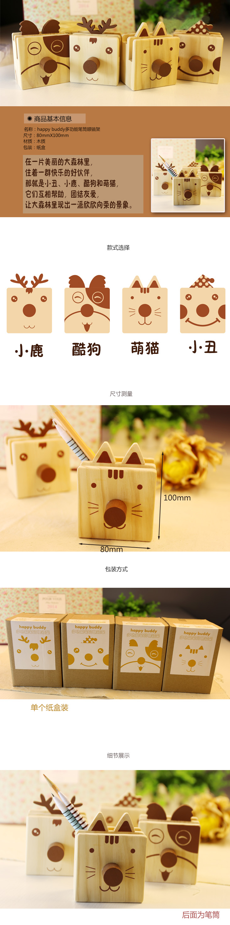 商品名称:韩国创意文具 Happy Buddy多功能笔筒 文具盒 眼镜架 奇特小礼品 创意实用小礼品
