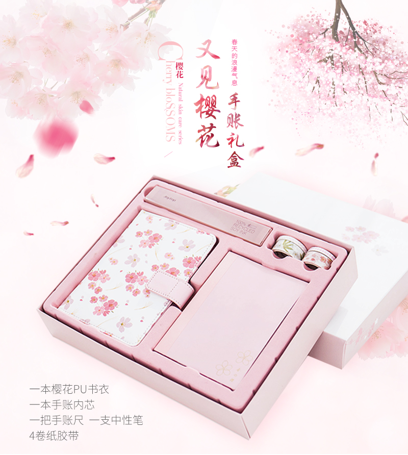商品名称:【又见樱花手账礼盒】创意记事本日程计划本套装 文具礼盒