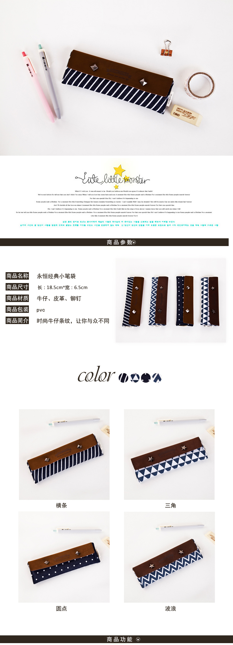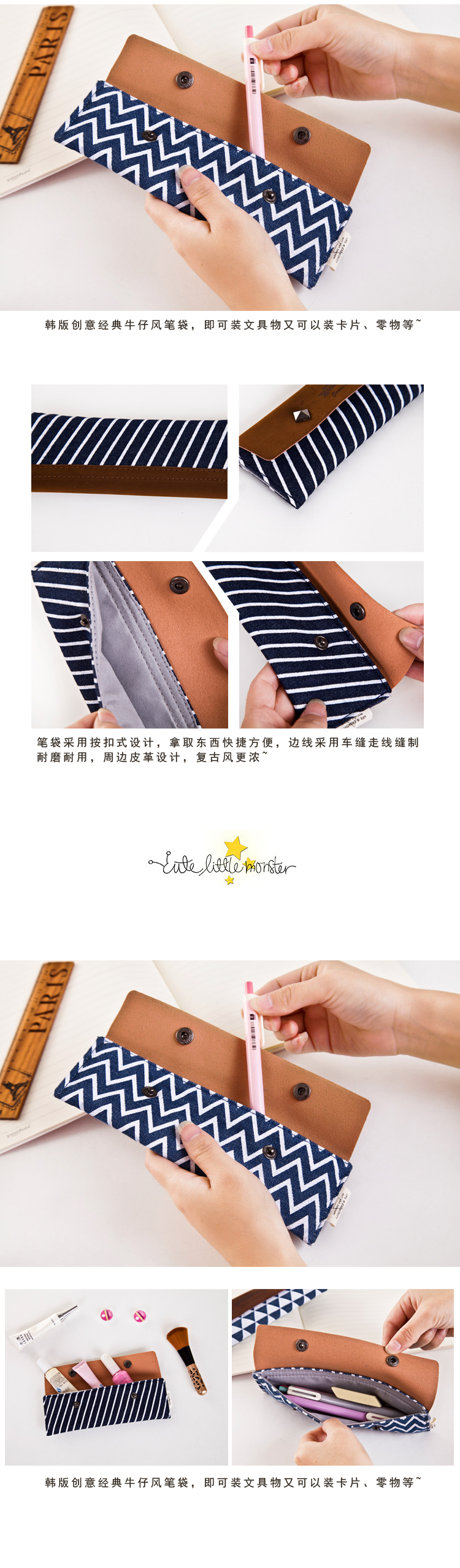 商品名称:韩国文具 简约复古风文具盒 小笔袋 大学生小礼品
