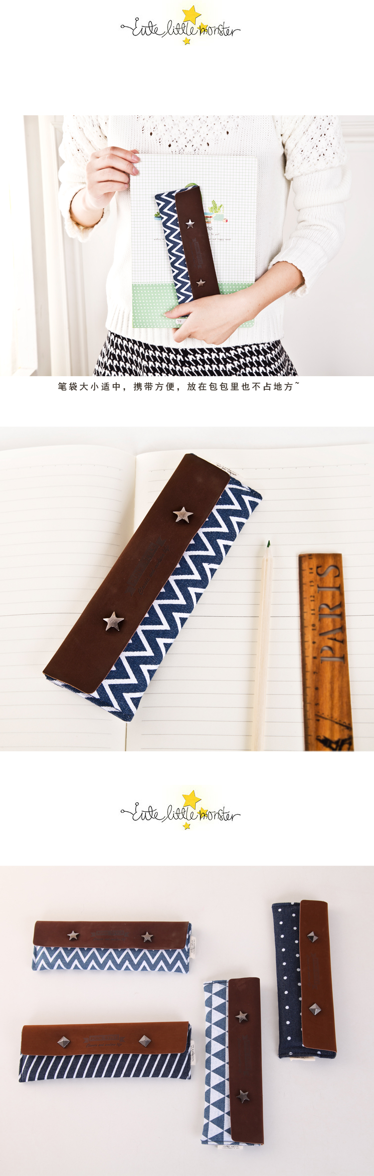 韩国文具 简约复古风文具盒 小笔袋 大学生小礼品