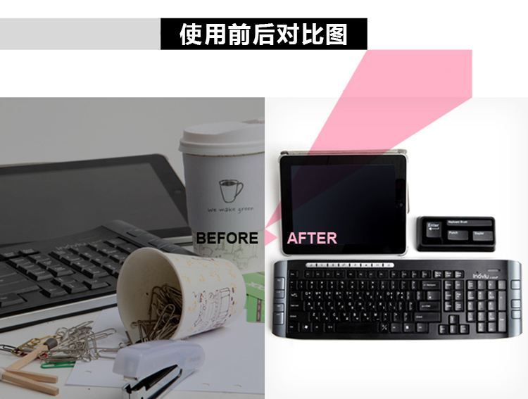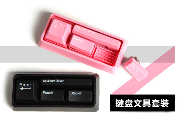 商品名称:创意电脑键盘办公文具套装(迷你打孔器+订书机+键盘刷+回形针吸附器)