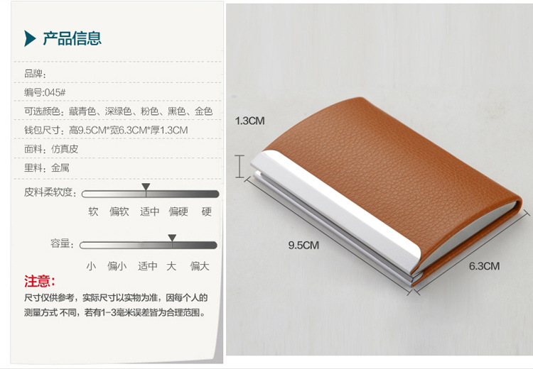 商品名称:创意PU皮不锈钢曲面商务名片盒 名片夹礼品定制