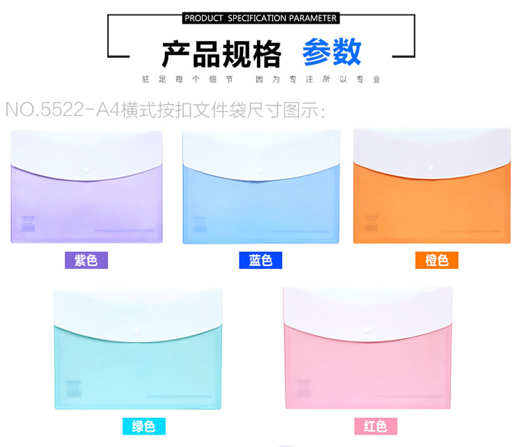 商品名称:得力(deli)A4按扣文件收纳袋 资料袋 文件袋 学生礼品定制