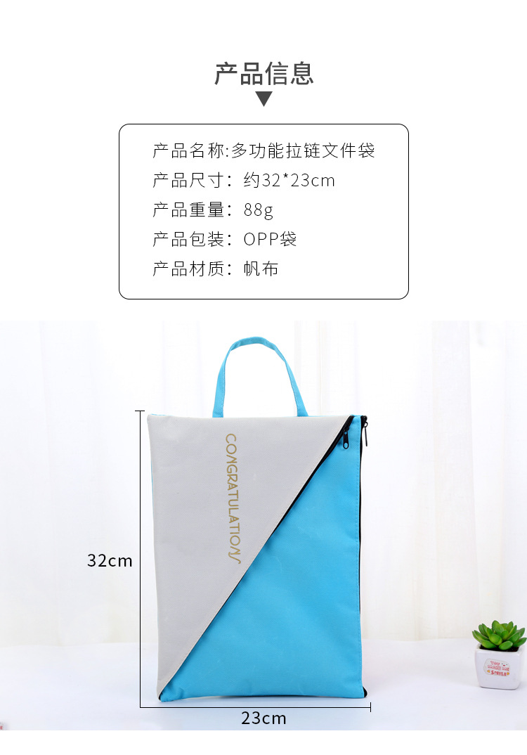 商品名称:创意手提大容量牛津布文件袋学生多功能双层资料袋拉链收纳包 办公用品 会议礼品