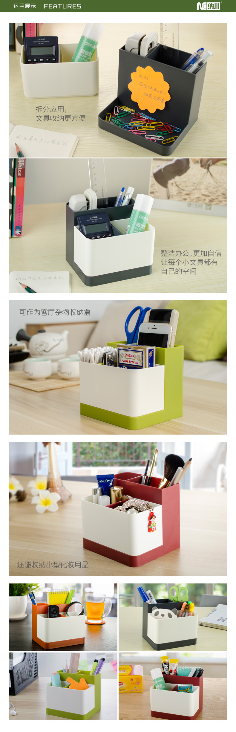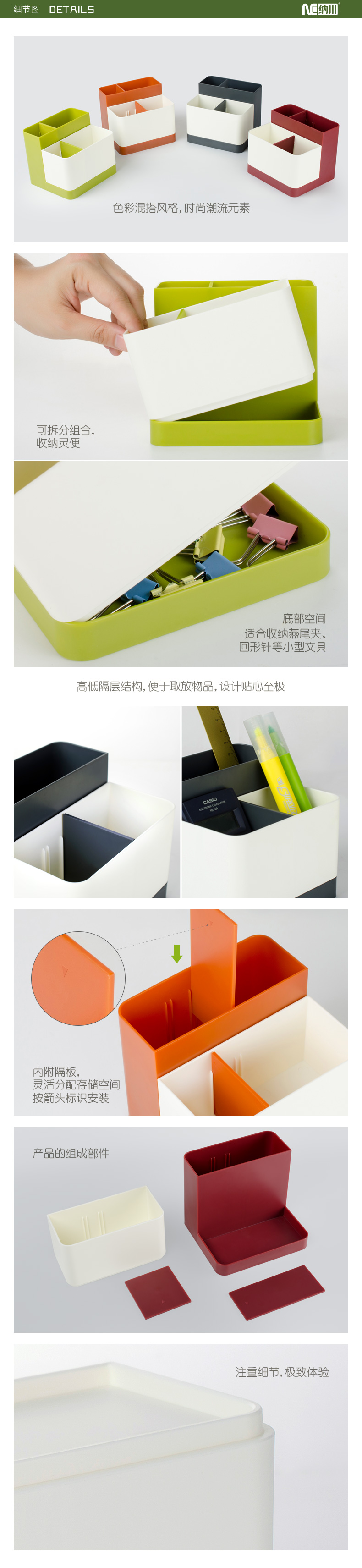 商品名称:纳川可拆装分隔式桌面杂物收纳盒--钛空灰+芬德拉白
