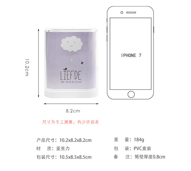 商品名称:【四季物语系列】加厚亚克力方形笔筒创意时尚 韩国小清新学生办公桌面收纳盒 创意礼品