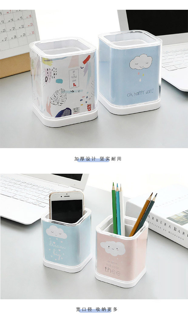 【四季物语系列】加厚亚克力方形笔筒创意时尚 韩国小清新学生办公桌面收纳盒 创意礼品