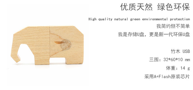 商品名称:U盘定制 创意竹木U盘 可爱动物U盘 卡通大象优盘 创意礼品 游戏展奖品