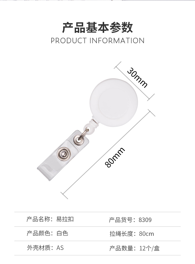 商品名称:【单个装】得力(deli)可伸缩易拉扣 金属夹扣 证件卡夹扣 办公用品定制