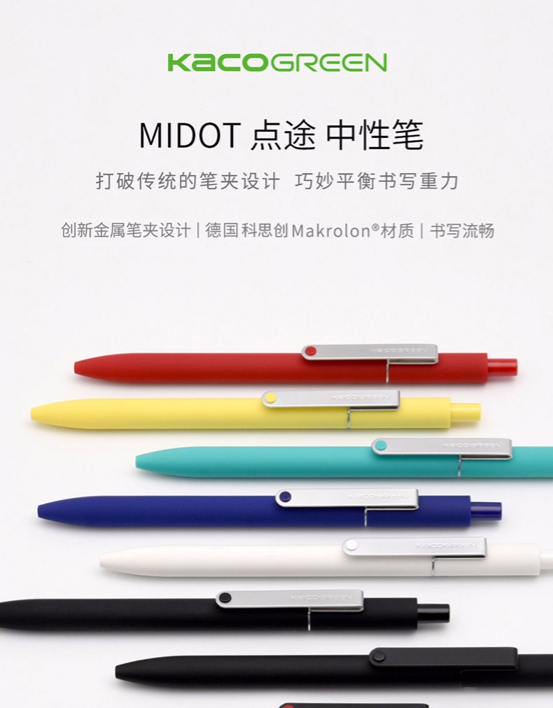 商品名称:KACO MIDOT点途中性笔 彩色笔杆按动式中性笔 0.5黑色水笔 公司内部培训奖品