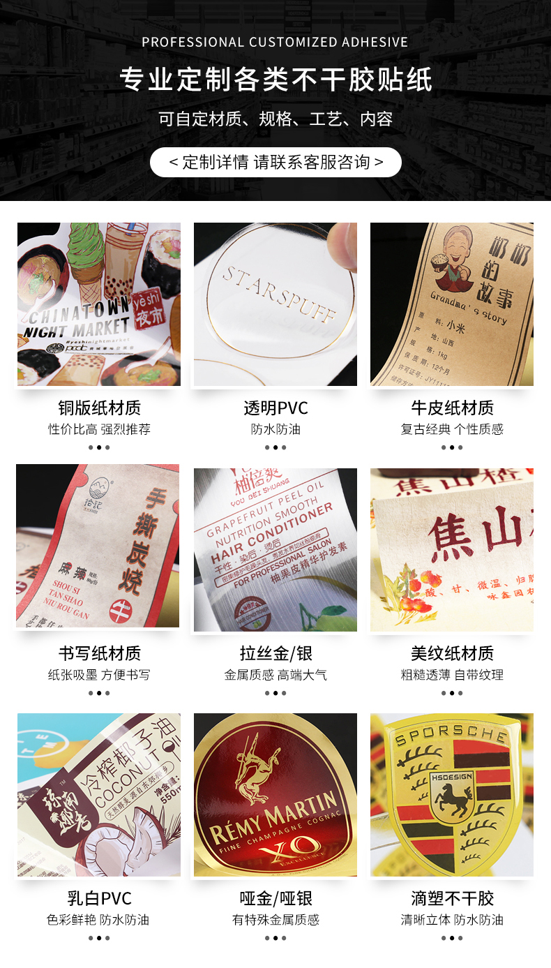 商品名称:【普通不干胶】不干胶定制 铜版纸不干胶 特种纸不干胶定做