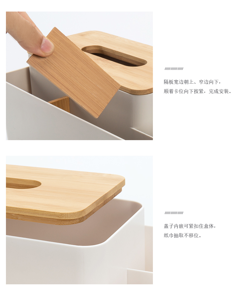 商品名称:纳川楠竹分格桌面收纳盒 纸巾盒--优雅白(A0297) 促销活动赠品方案