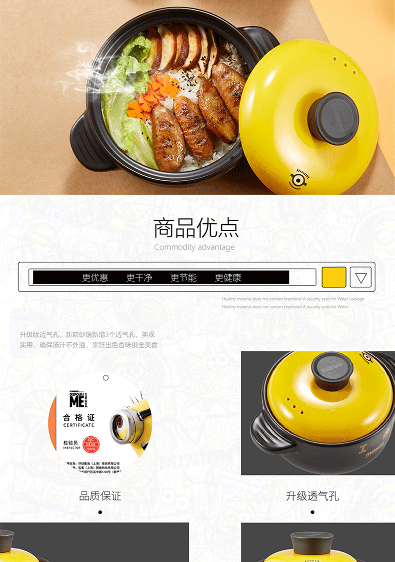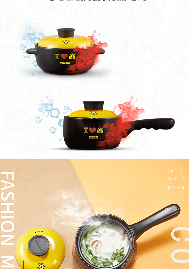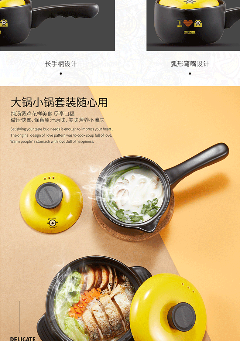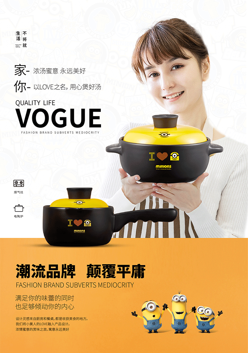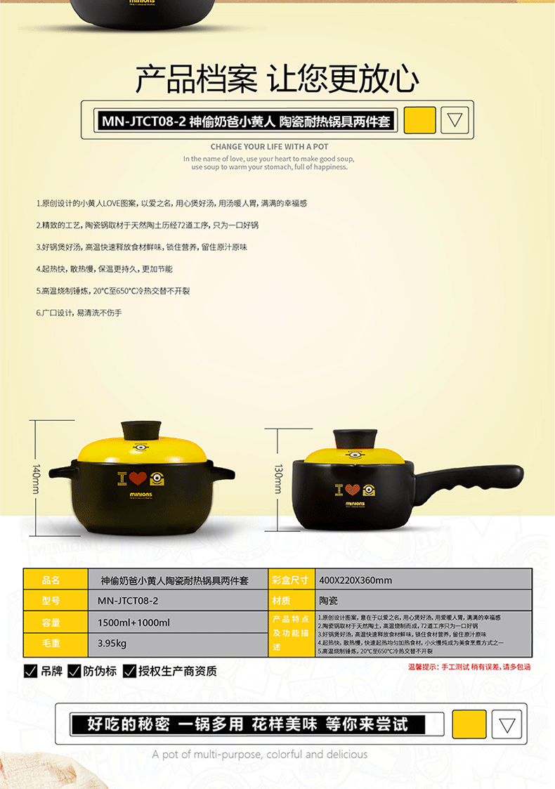 商品名称:小黄人 陶瓷耐热锅具两件套 展会礼品定制