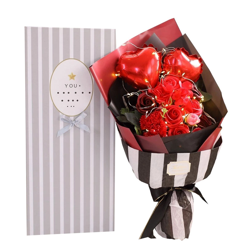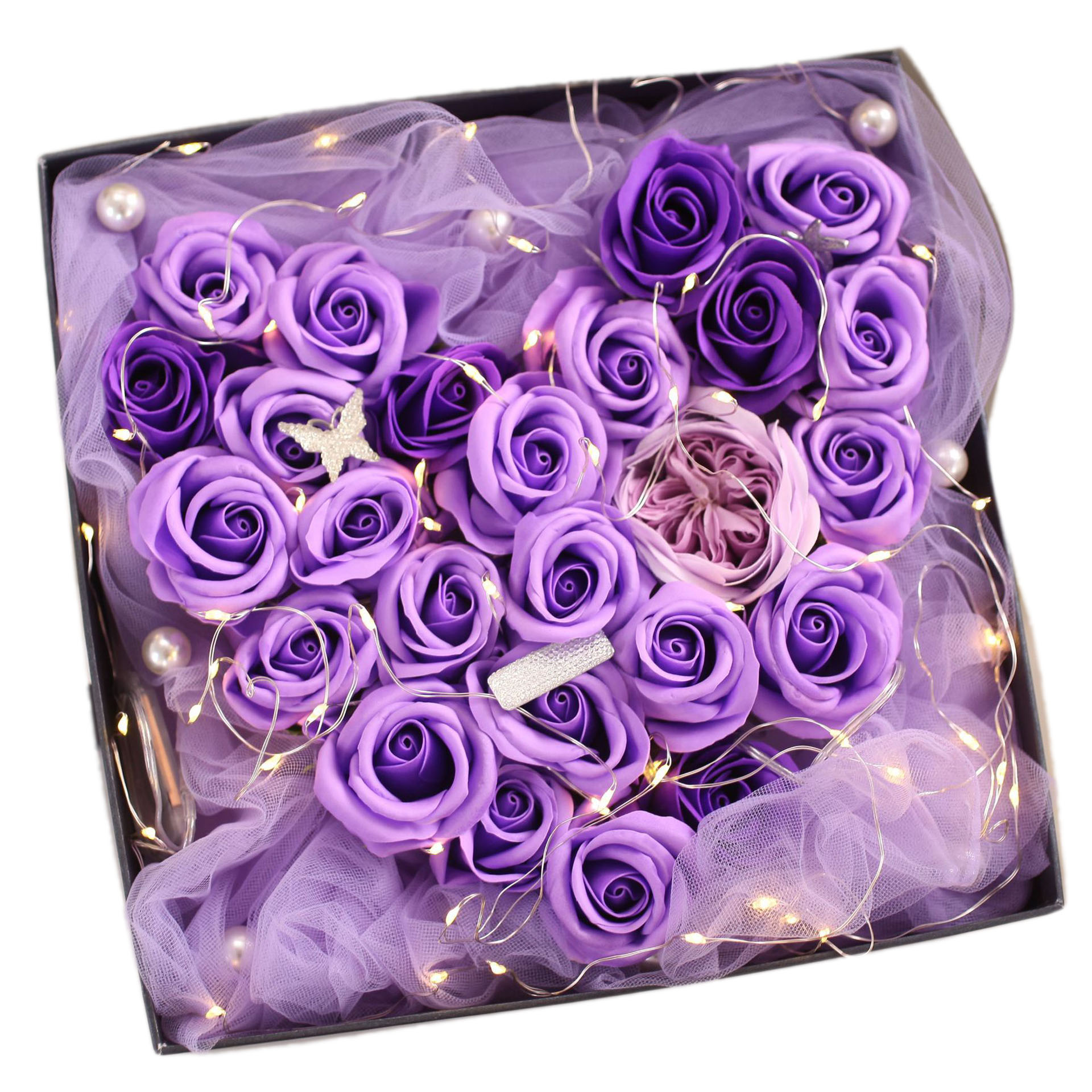 创意网纱玫瑰香皂花心形礼盒彩灯款 七夕的活动礼品