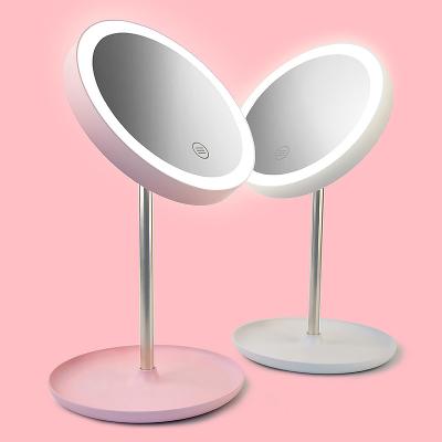 桌面折叠台式LED化妆镜 充电式补光梳妆镜--粉色(B0113) 创意礼品有哪些