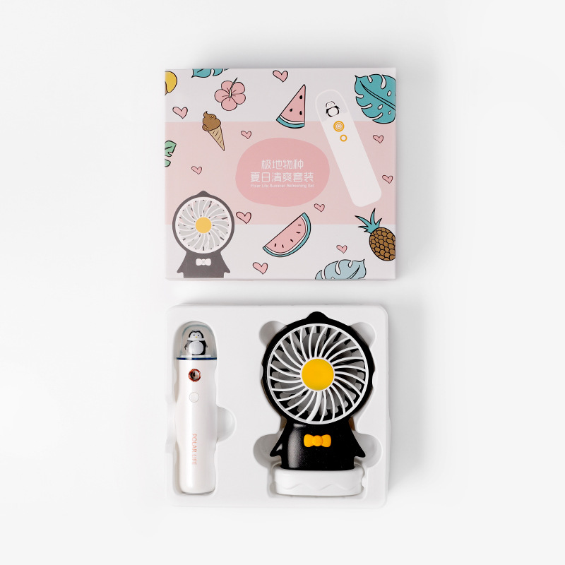 极地物种夏日清爽套装 风扇补水仪两件套 纳米补水喷雾 随身便携卡通风扇 大学生礼品 办公室必备礼品