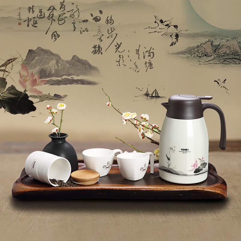 菲驰(VENES)家用保温壶套装1600ML保温壶+500ML保温别+400ML陶瓷杯*2 地产交房礼品