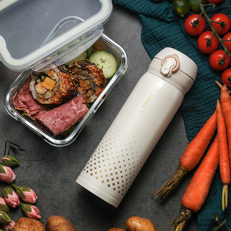 菲驰(VENES)奥氏体304不锈钢弹跳杯保温杯焖烧杯两件套装 春节礼品推荐
