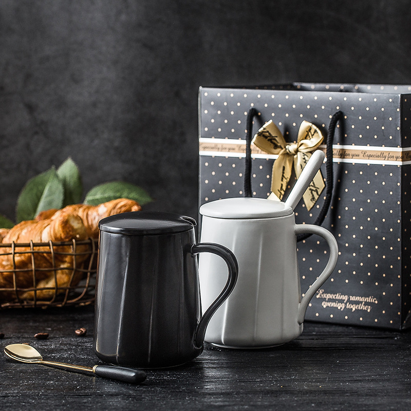 北欧ins风带盖带勺陶瓷马克杯 售楼处创意礼品